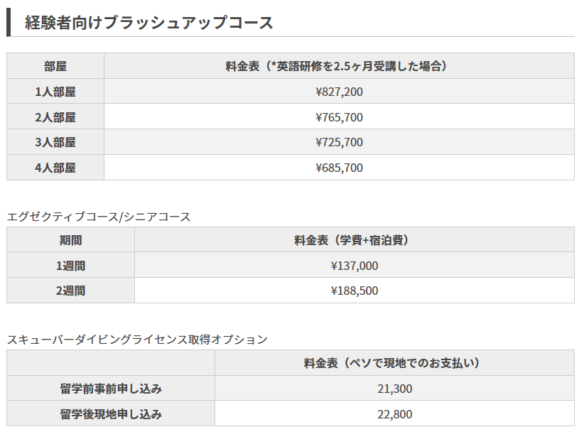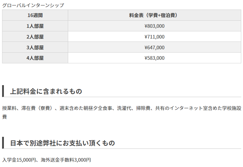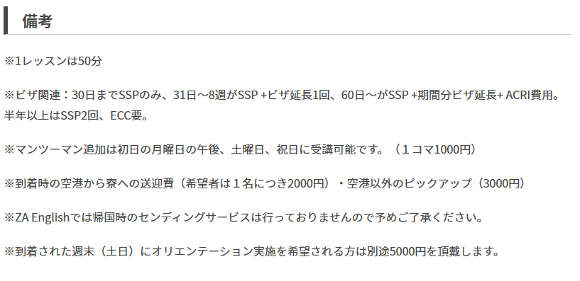 ESLのコースにシティーツアーや現地の生活費用やSSP代が全てコミコミのお得なプランです。